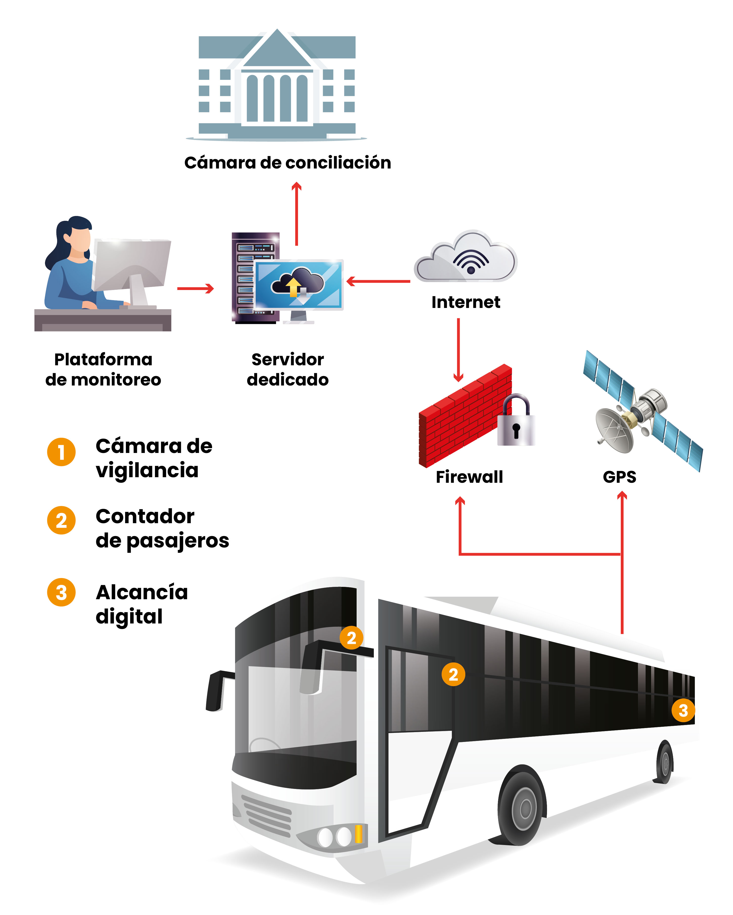 Cuenta pasajeros mediante inteligencia artificial y está equipada con un sistema de cámaras de seguridad.