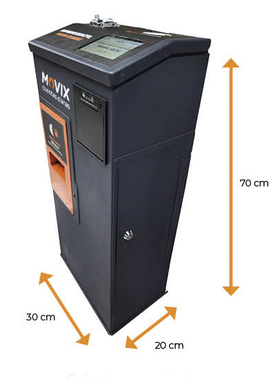 La Alcancía Inteligente MoviX es en un equipo compacto, robusto y listo para operar que combina lector de tarjetas, validador de monedas, pantalla de 5", módulo criptográfico (SAM) y conectividad remota.